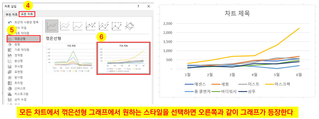 이러한 표가 있으면 3초 만에 그래프화 시킬 수 있다. 간단한 꺾은선 그래프를 넣어보자. 그래프 디자인 및 데이터 설정 등 자세한 요소는 따로 포스팅을 작성할 예정이다.