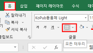 직선은 '홈'에서 테두리 메뉴를 이용해 적용해 보겠다.
