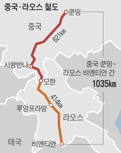 중국 일대일로의 일환으로 고속철도가 개발되었다고 한다. 이 철도는 라오스의 주요 도시 비엔티안-방비엥-루앙프라방을 거치고 중국 쿤밍까지 이어진다.