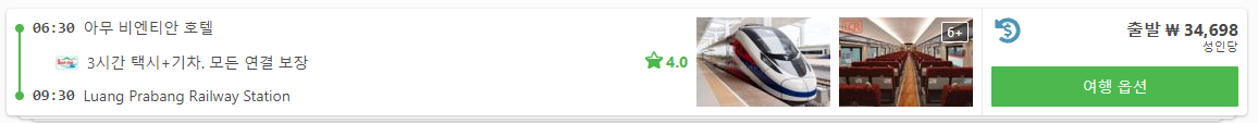 고속열차: 주요 도시만 이동하고 일 2회 운행하며 방비엥까지 1시간, 루앙프라방까지 2시간 소요