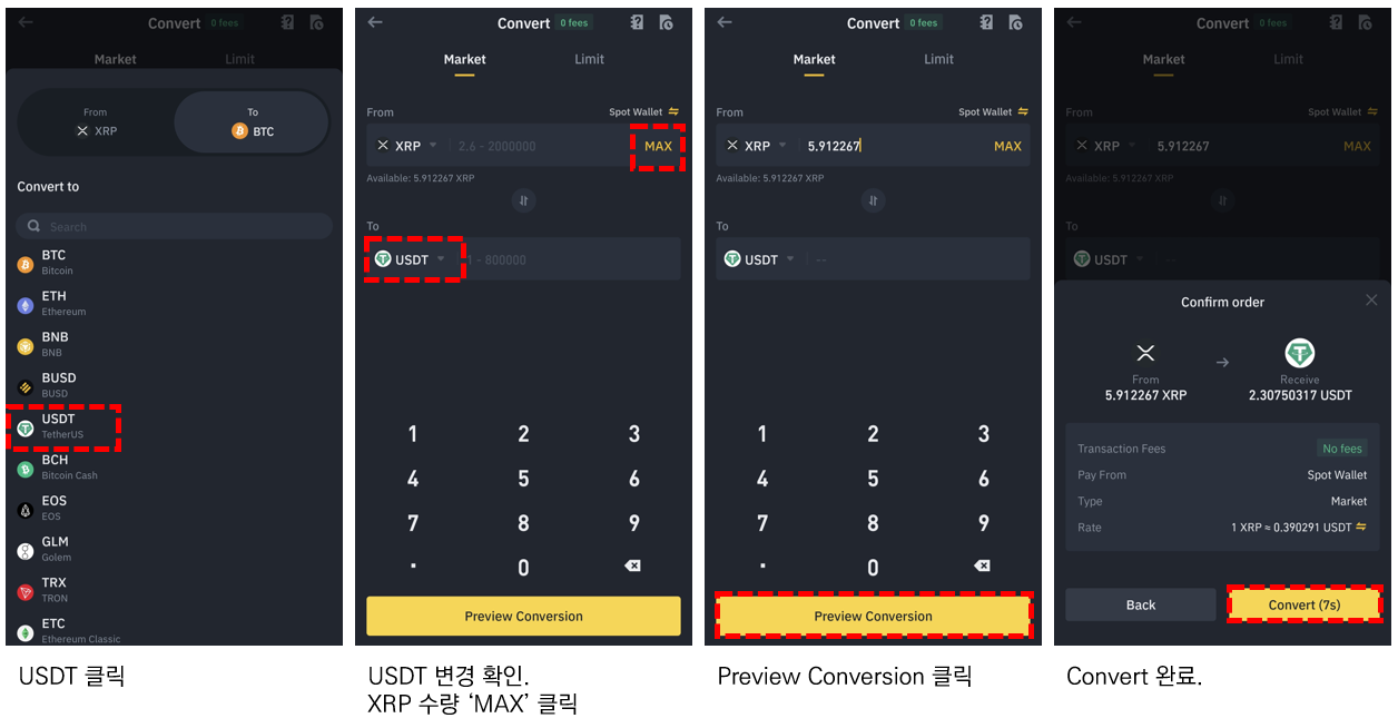 ⑤ 바이낸스 리플 수량 확인 후 USDT로 Convert