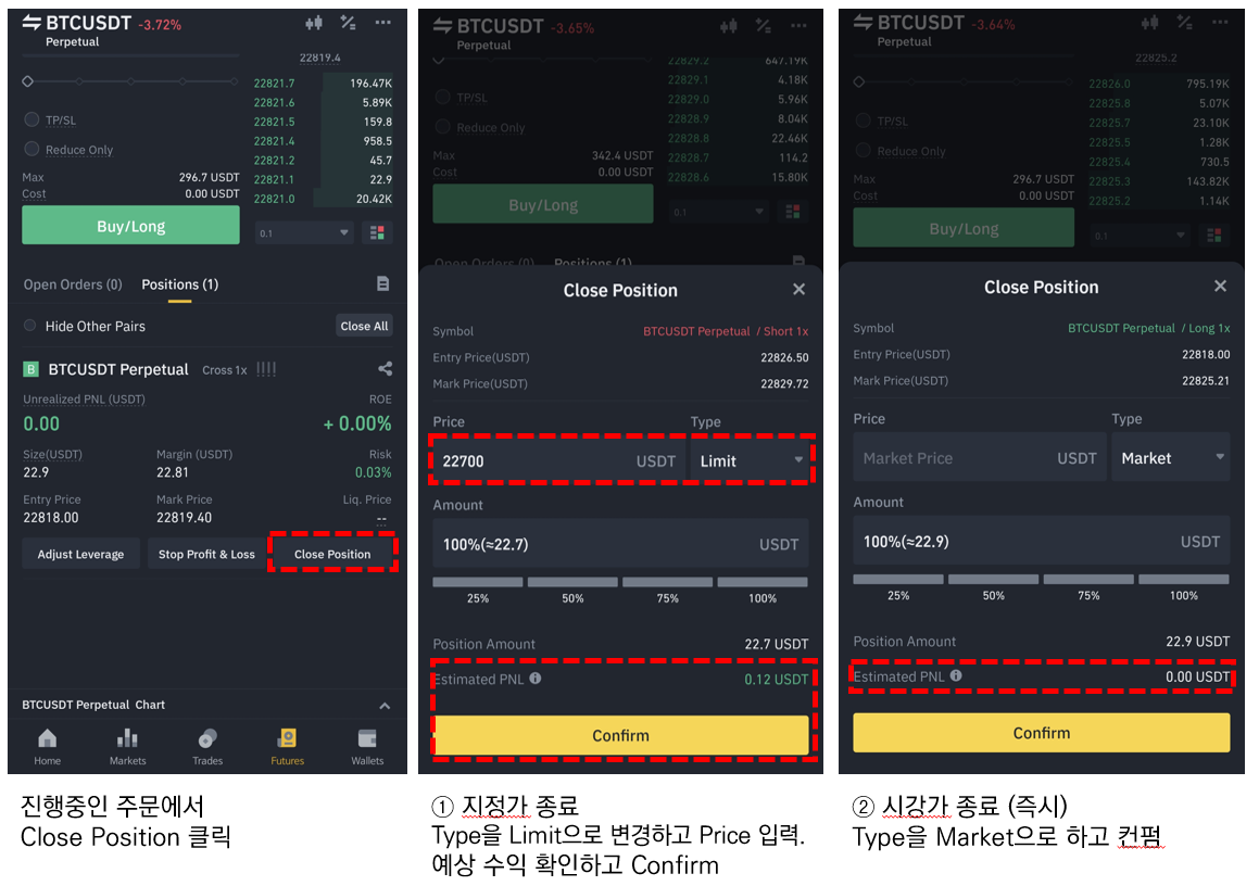 종료는 지정가와 시장가 종료 두 가지 방법이 있다.